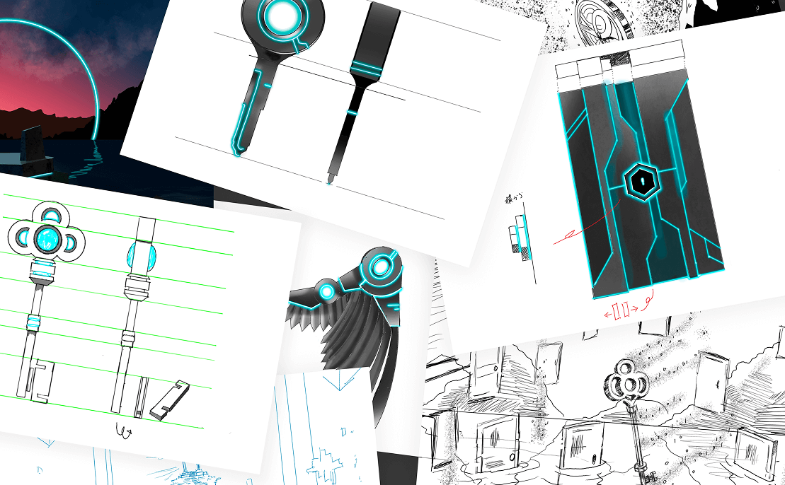 このCGを核としたコンセプトメイキングには、2ヶ月もの時間を費やしました。度重なる議論と試行錯誤の末、「鍵」「翼」「扉」という3つのモチーフが誕生。「鍵」は自由への探求、「翼」は可能性を広げ飛翔する力、そして「扉」は新たな世界を自ら開く意思。これらが、自由を求め自ら道を切り開いていく世界観を確固たるものにしました。